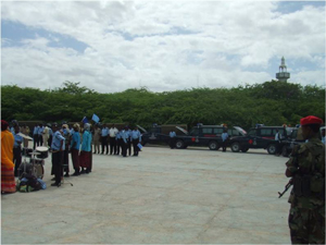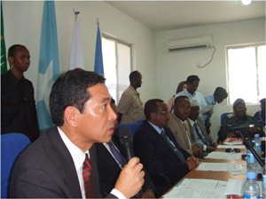 Handing over ceremony of transport vehicles and equipment from the Government of Japan to Somali Police Force Handing over ceremony of transport vehicles and equipment from the Government of Japan to Somali Police Force was held on Monday 7th May 2012 in Mogadishu, Somalia. Ambassador Toshihisa TAKATA as well as Since 2008, the Government of Japan has been supporting the Somali Police Force through UN Agencies to the tune of approximately 30 million US dollars. Assistance to the Somali Police Force includes stipend payment, training, operational cost, provision of transport vehicles, protection gears (helmets, flack jacket etc) and communication equipment. Fresh assistance in stipend payment, rehabilitation of police stations, provision of armored vehicles are expected to be delivered soon through UN Agencies. It was Ambassador TAKATA’S first visit to Somalia since he arrived in Nairobi in September 2010 as Ambassador in charge of Somalia affairs. Ambassador TAKATA’s speech script