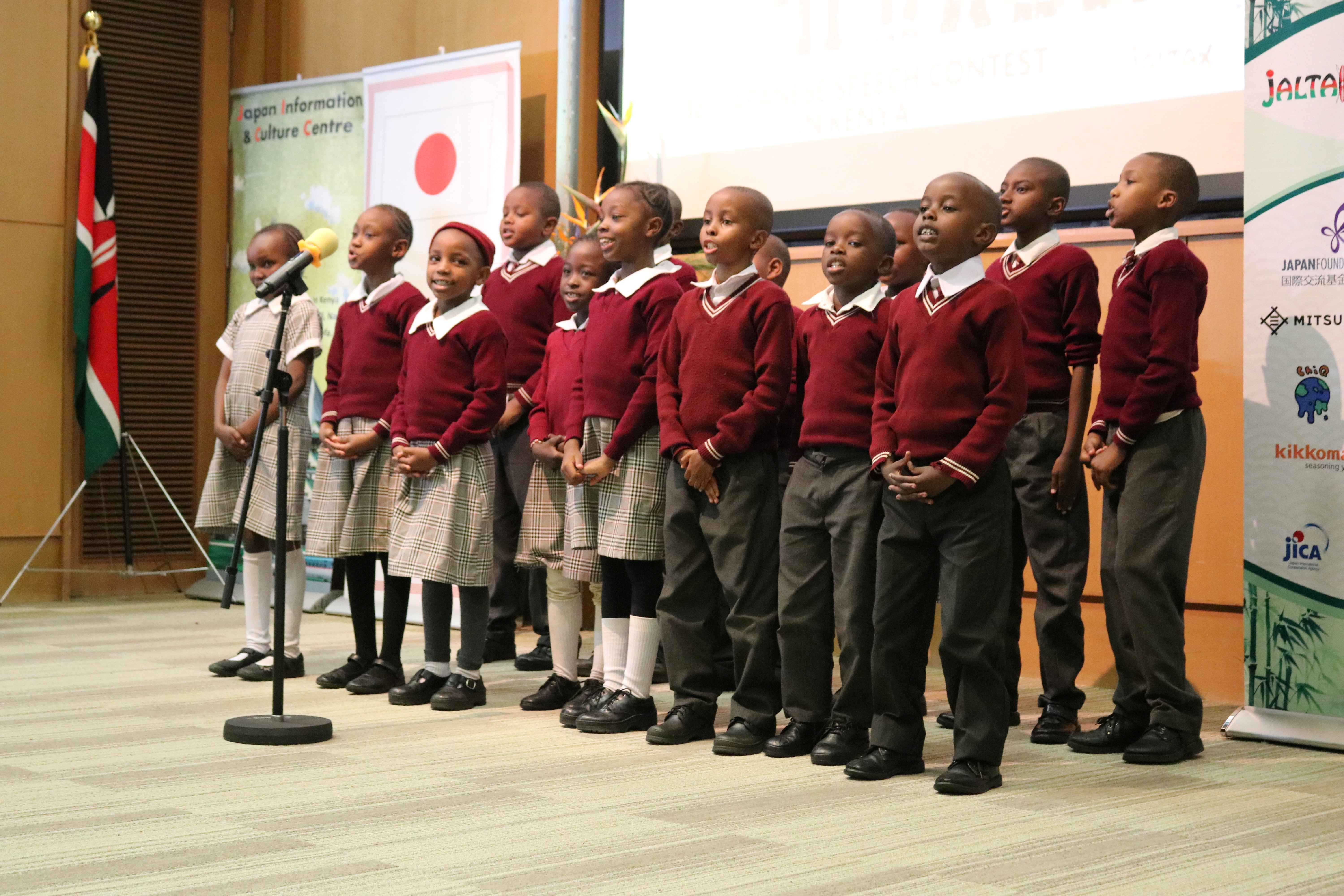 This year's competition had 20 contestants, including those in the children's category. One of the top contestants of this year's competition will be selected to participate in “Japanese–Language Program for Overseas Students (Outstanding Students)” to visit Japan in September. In the entertainment category, dances, songs and drama were performed by Kenyans and Japanese of all ages, from kids to university students and Japan Overseas Cooperation Volunteers.