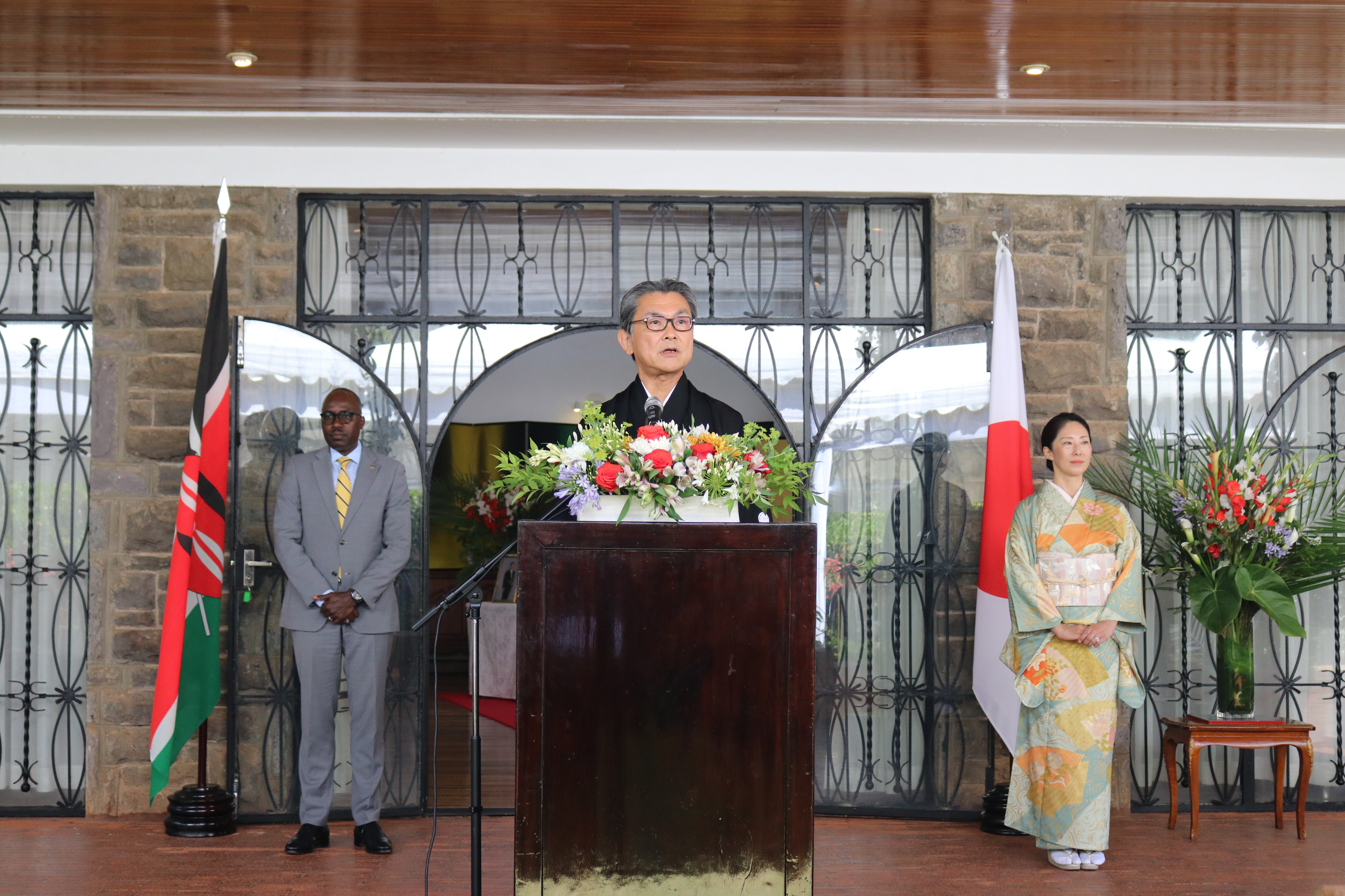 日本とケニア両国は、法の支配に基づく国際秩序、多国間主義、平和と安定、汎アフリカ主義といった共通の外交原則のもと、自由で開かれたインド太平洋の推進や東アフリカ共同体の市場統合を目指してまいります。ナイロビを拠点とする国連機関との連携強化も進め、多国間協力をさらに推進していく所存です。日本はケニアの自主的かつ強靭な発展を支援し、楽観的で勤勉、伝統を重んじる両国の共通点を基に、相互の信頼と尊重に根ざした長年の友情関係をこれからも築き続けます。