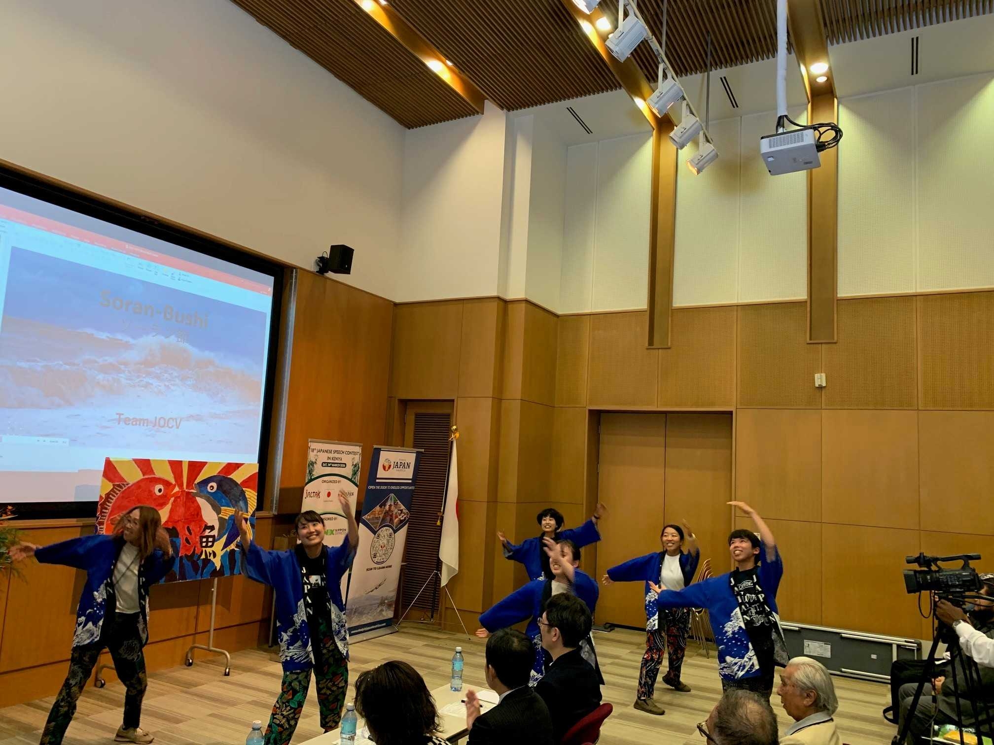 今年の大会には、児童部門を含めて20名が出場しました。今大会の上位入賞者の中から1名が、毎年9月に実施されている国際交流基金の日本語学習者訪日研修(成績優秀者)に参加する予定です。また、エンターテインメント部門では、小学生から大学生、JICA青年海外協力隊まで幅広い年齢のケニア人と日本人によるダンス、歌、劇なども披露されました。